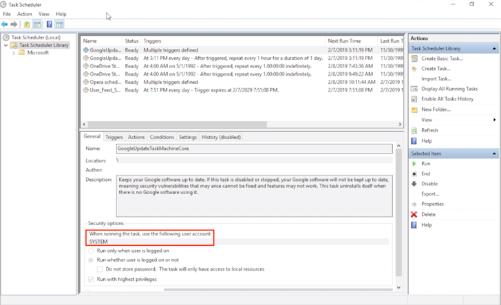 First off, we need a file to overwrite that might give us elevated privileges. Looking through the task scheduler to see tasks running as SYSTEM is a good start.